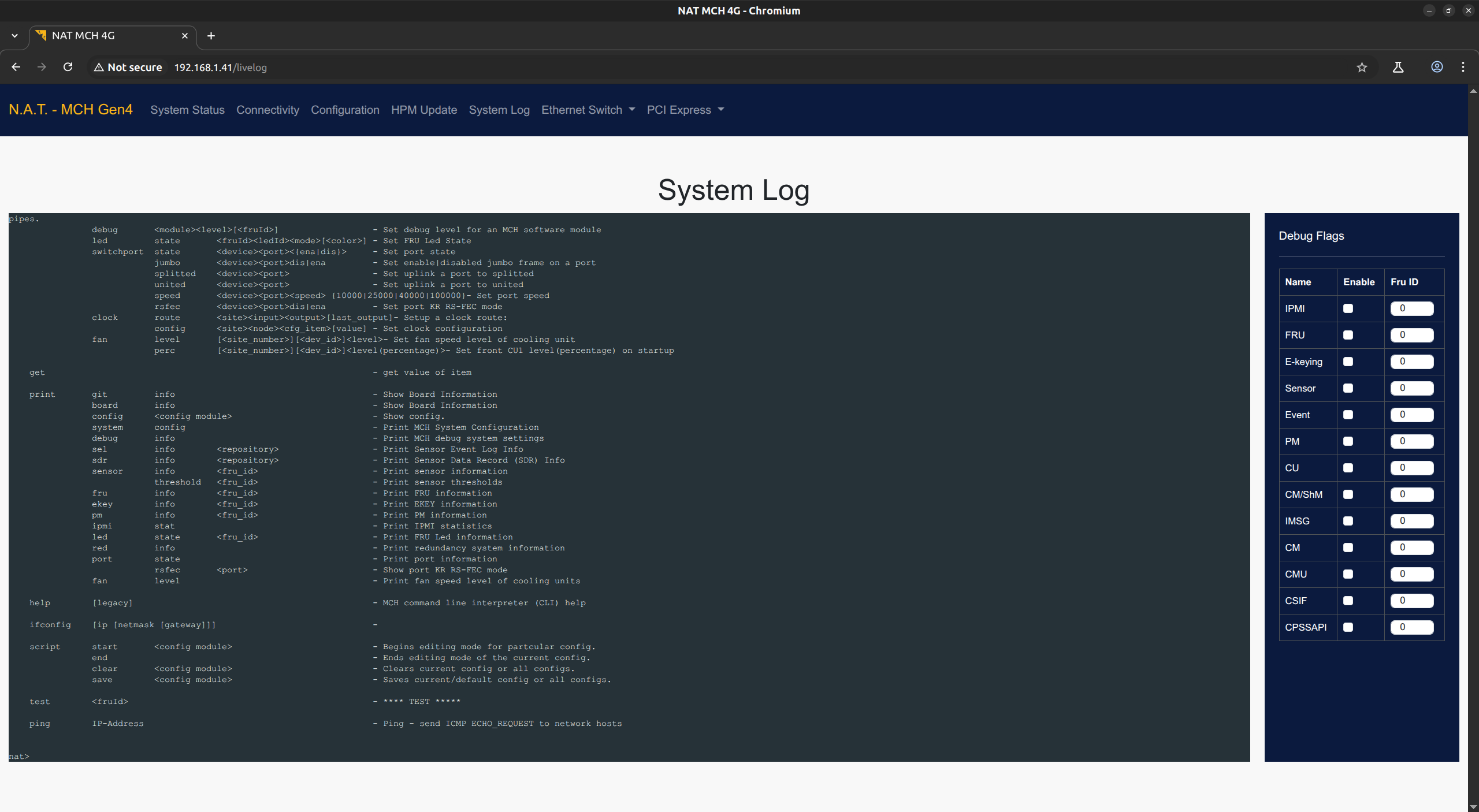 The NAT-MCH-G4 can be configured and managed through a CLI via the serial console, telnet or ssh and through a comprehensive web-based GUI.