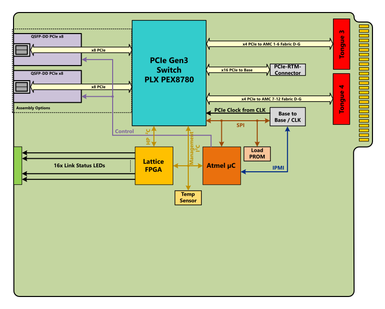 - Gen3 x8 and x16 switching functionality to reduced number of AMCs